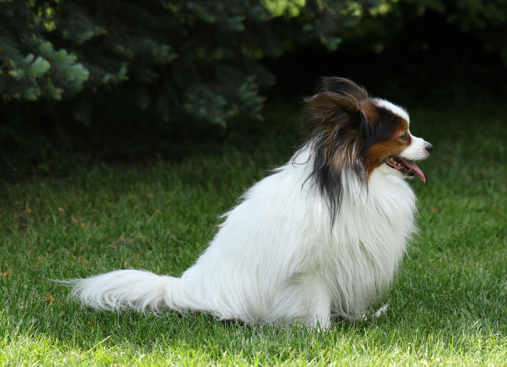 Papillons have a silky, single coat that doesn’t require heavy grooming. Despite their long hair, they’re relatively low maintenance compared to many long-coated breeds.