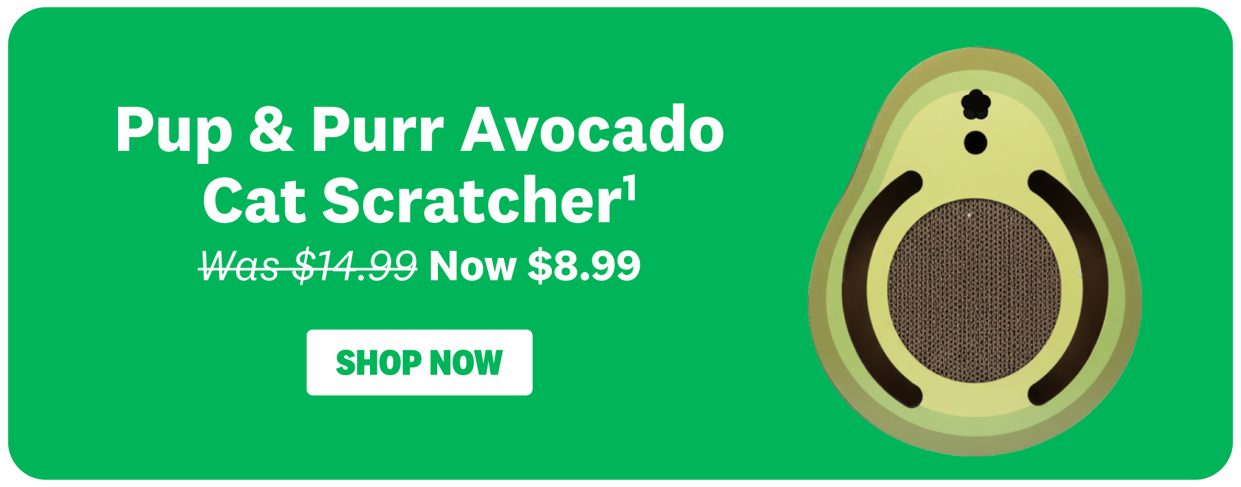 ¹Pup & Purr Avocado Cat Scratcher now $8.99 (RRP/Was $14.99). Offer valid until 11:59pm, Monday 23 February 2026 or while stocks last. Not valid in conjunction with any other offer. We reserve the right to change or extend this offer at any time.