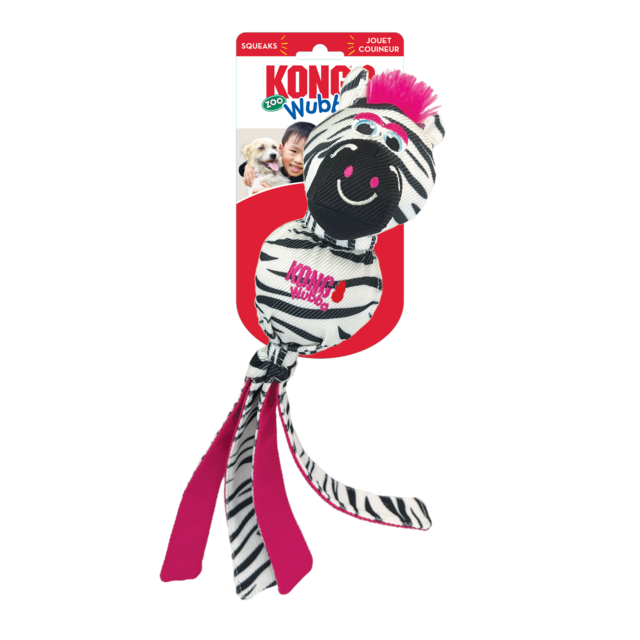 KONG Wubba Zoo turns playtime into an instinct-satisfying shaking safari with exotic animal pals whose long floppy tails make thrashing even more exciting. Squeaker in the body prolongs play. Reinforced material delivers long-lasting fetching, tugging and shaking fun with minimal stuffing for less mess. Ideal for interactive or solo adventures.